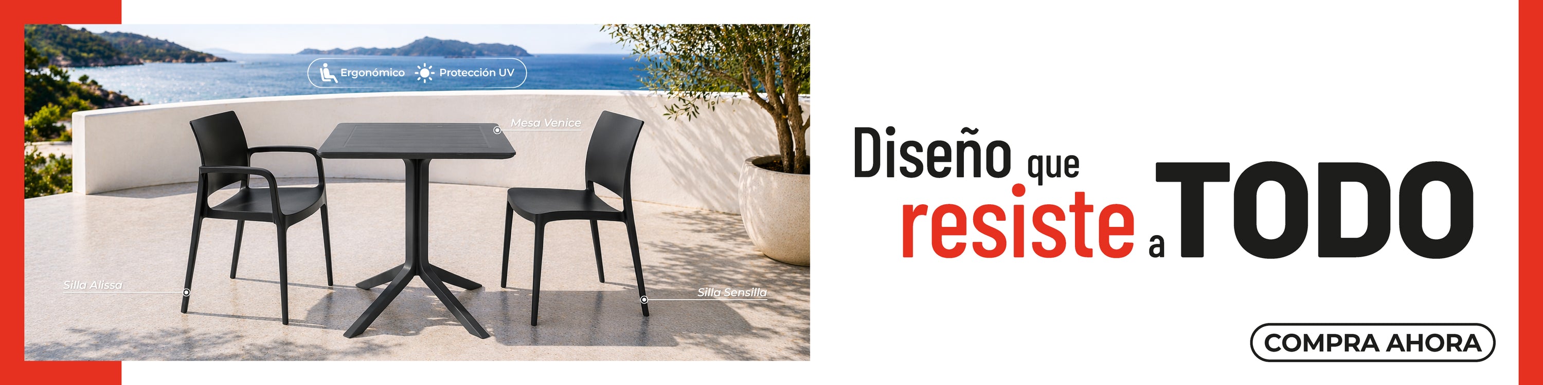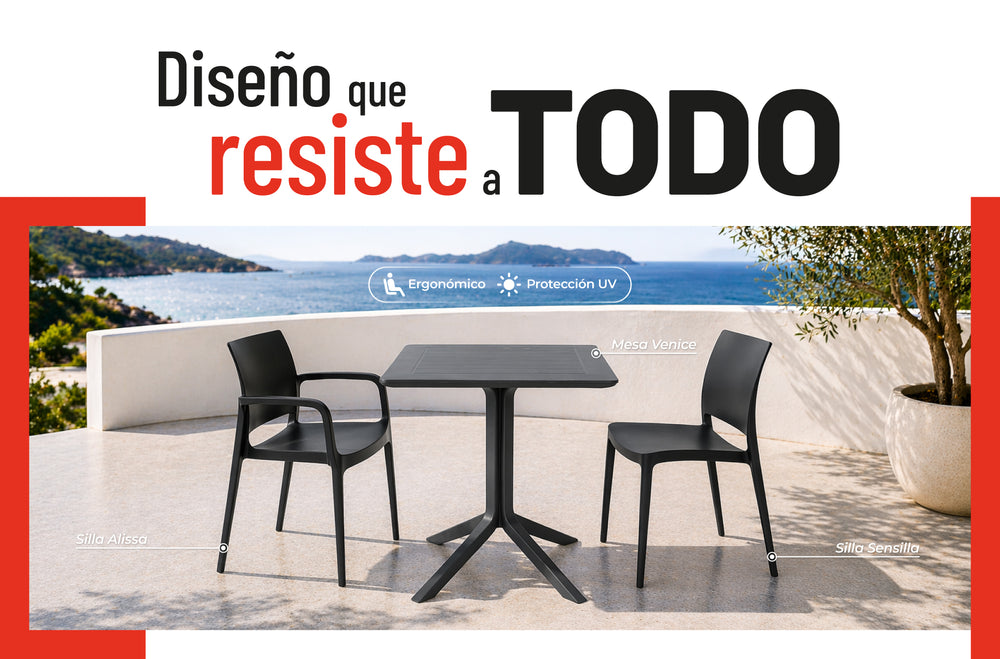 Lagoon Mesa de Comedor Cuadrada de Polipropileno con Protección UV, Resistente a Exteriores, Modelo Venice 7155