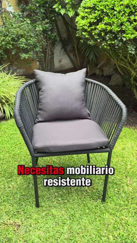 Silla de Jardín para Exterior Tejida con Cojín Incluido, Modelo Tulum