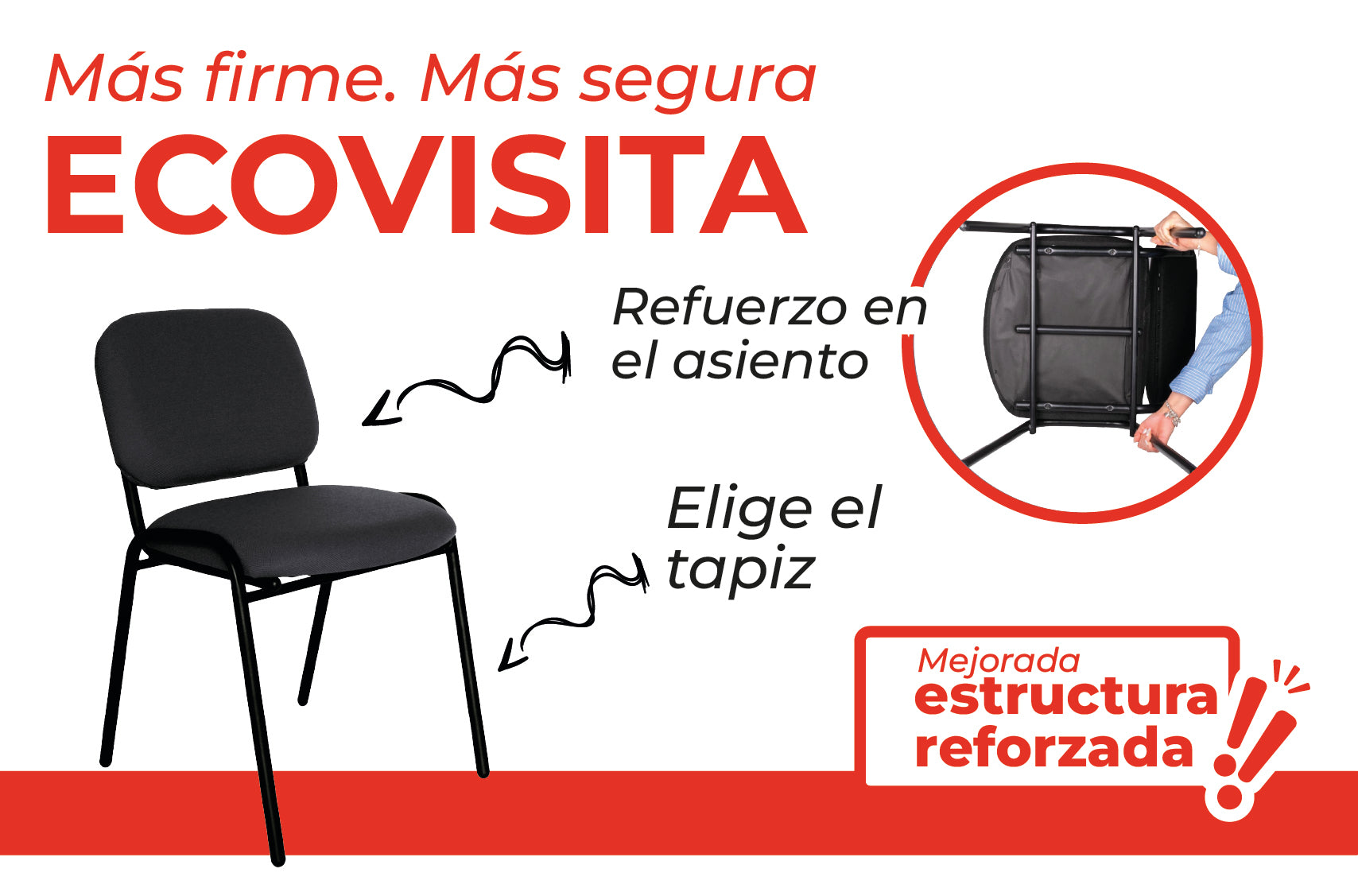 Offiho Silla de Oficina para Visita Tapizada con Estructura de Acero, Modelo ECOVISITA