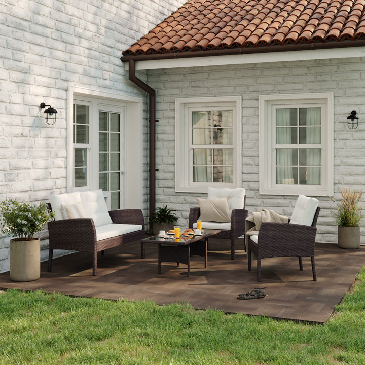 Lagoon Set de 4 Sillas de Comedor Tipo Ratán para Exterior e Interior con Protección Solar UV, Modelo Koppla 7027