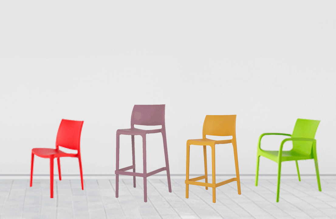 Offiho Set de 4 Sillas Para Restaurante Resistentes Para Exterior e Interior con Protección UV, Modelo Reef OHV62