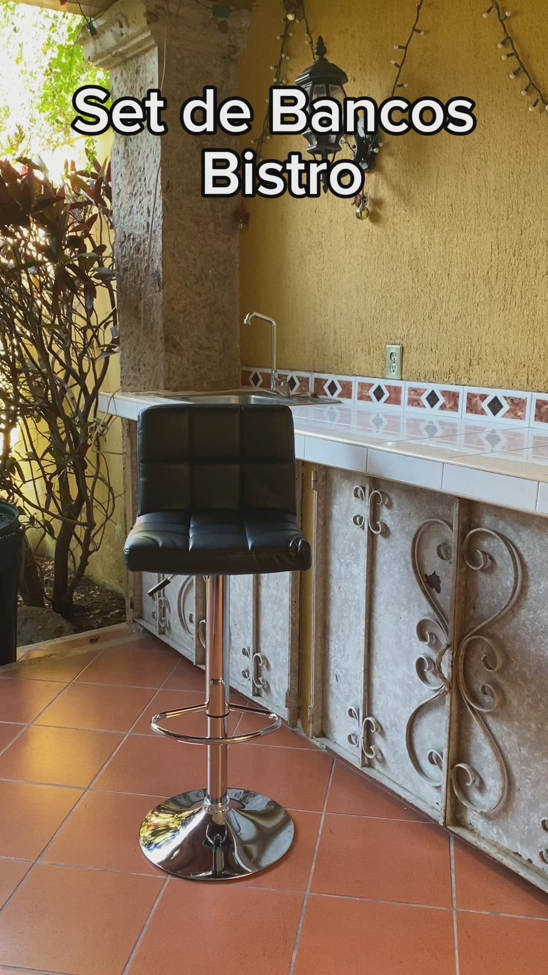 Este set de Bancos son una adición moderna para el hogar. Cada banco cuenta con un asiento tipo piel para mayor comodidad, soportado por una base de acero que garantiza resistencia y durabilidad. Cuentan con un mecanismo de altura ajustable que se adaptarán a la comodidad de cualquier persona.