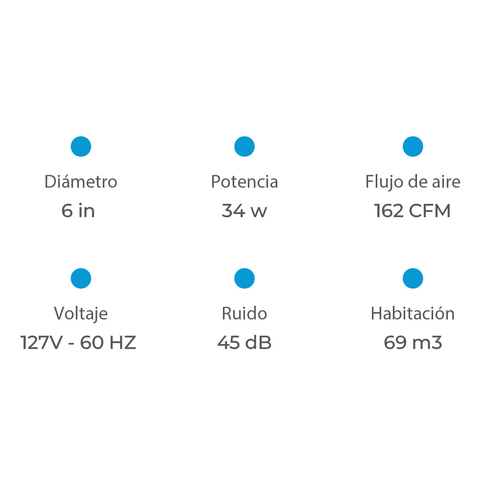 Estevez Extractor de Aire 6" con Rejilla Frontal, Para Baño / Cocina, Modelo 2606