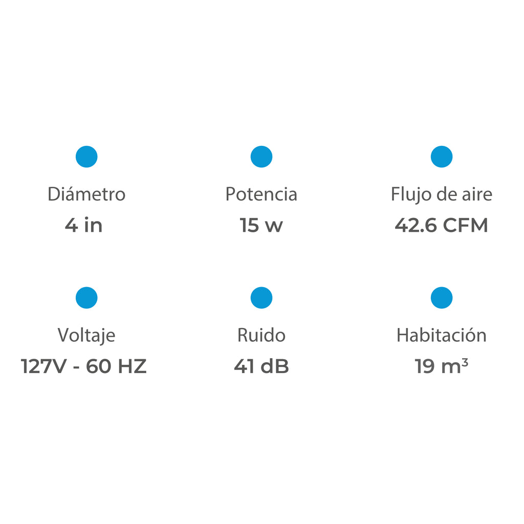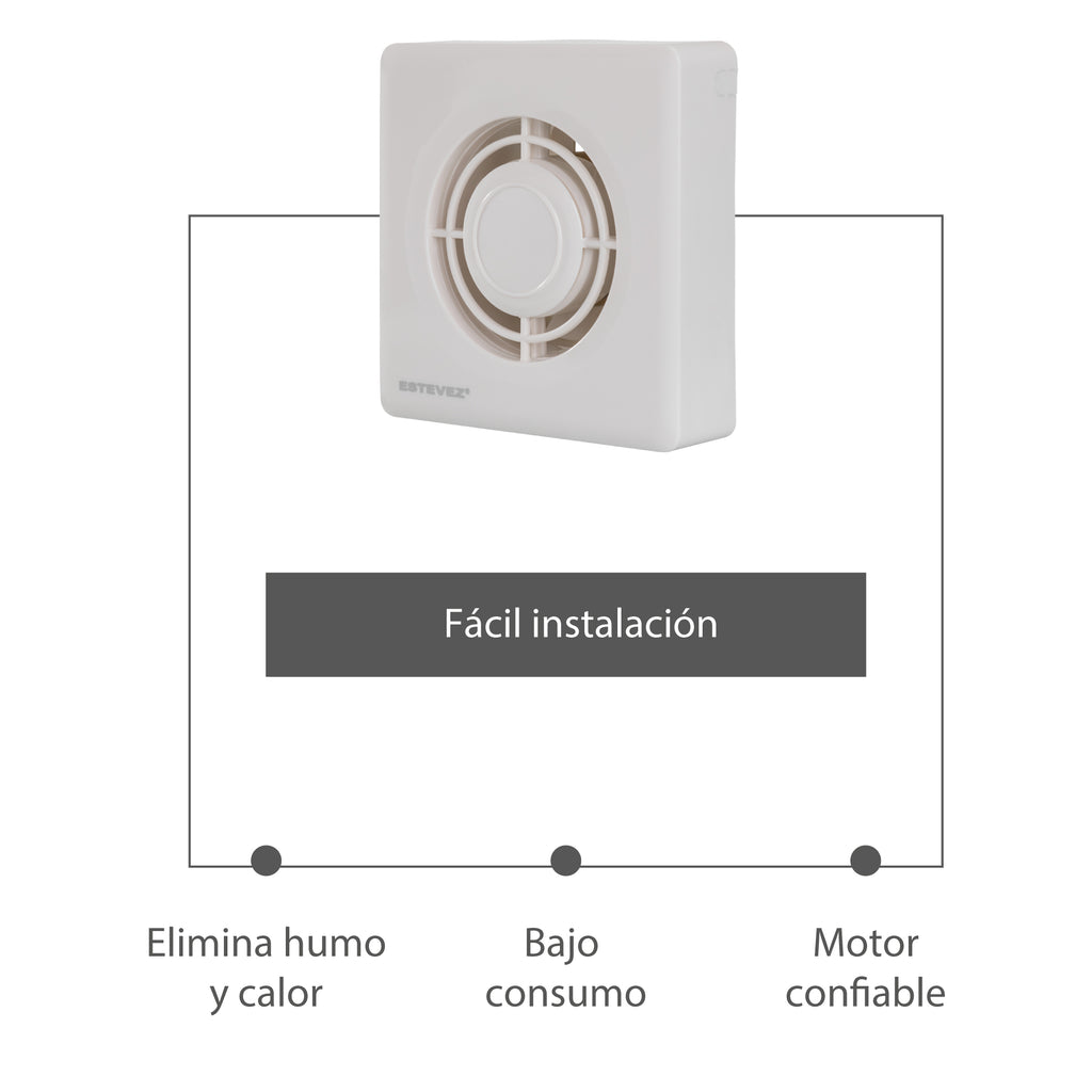 Estevez Extractor de Aire Con Reloj 4 ", Baño / Cocina, Pared, Modelo 3804