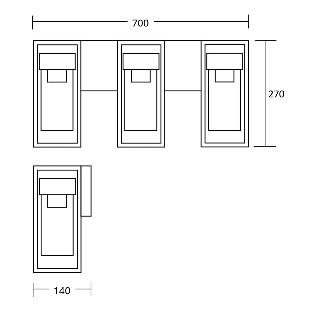 Dimensiones: 700 × 140 × 270 mm
