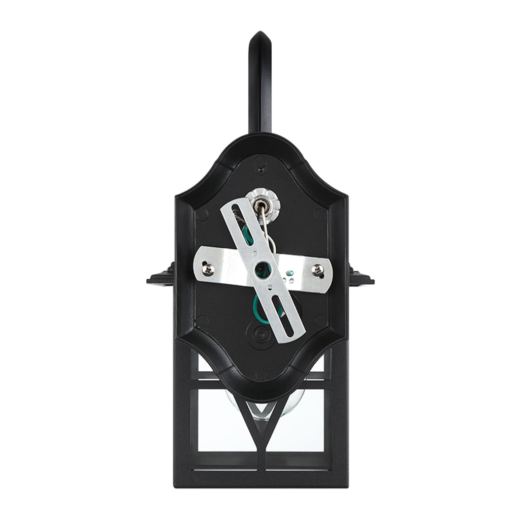 Fabricada en hierro y cristal, está diseñada para soportar condiciones en intemperie gracias a su protección IP44, que la hace resistente a la humedad y polvo. Funciona con portalámparas E26, ideal para focos LED o incandescentes según tus necesidades.