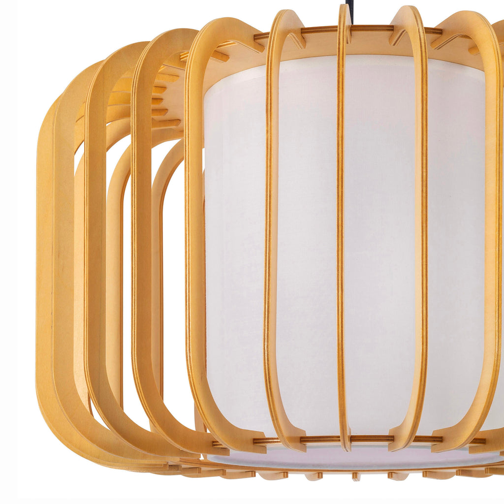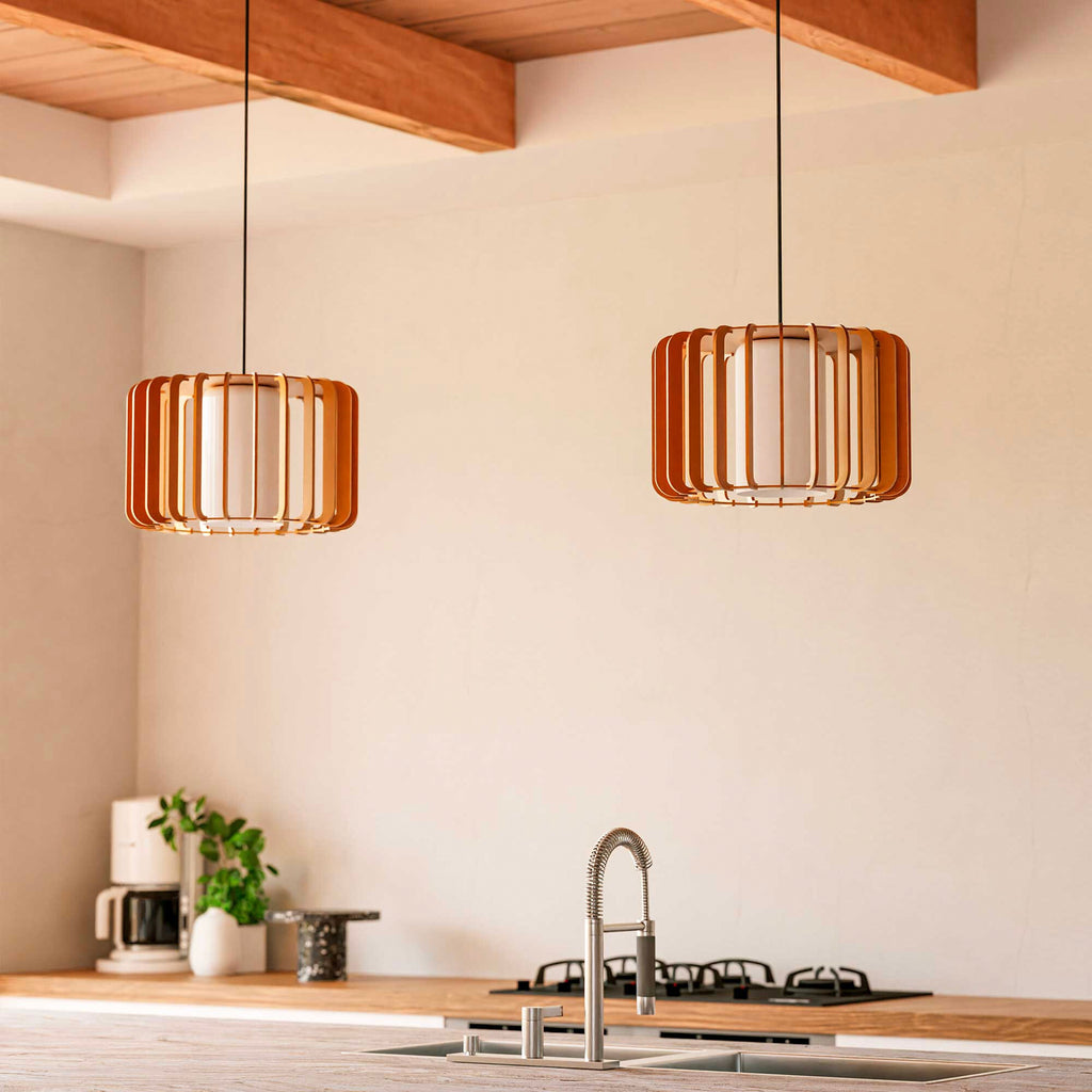 La luminaria decorativa Viva es ideal para añadir un toque cálido y natural a cualquier espacio. Su diseño combina madera y textil con detalles en color blanco, logrando una estética moderna y acogedora. Gracias a su acabado y materiales de alta calidad, esta lámpara colgante se adapta perfectamente a comedores, salas de estar o áreas sociales, aportando estilo y luminosidad equilibrada.