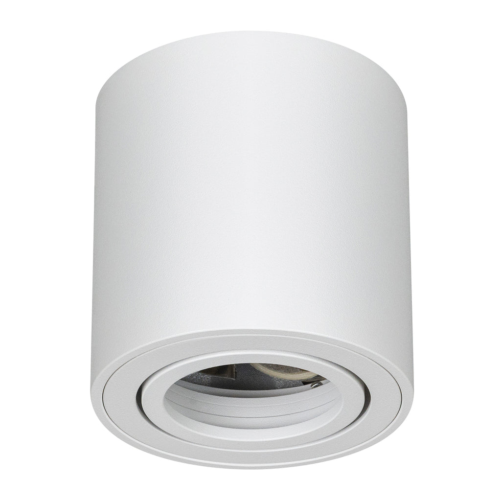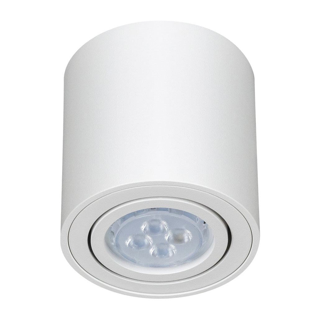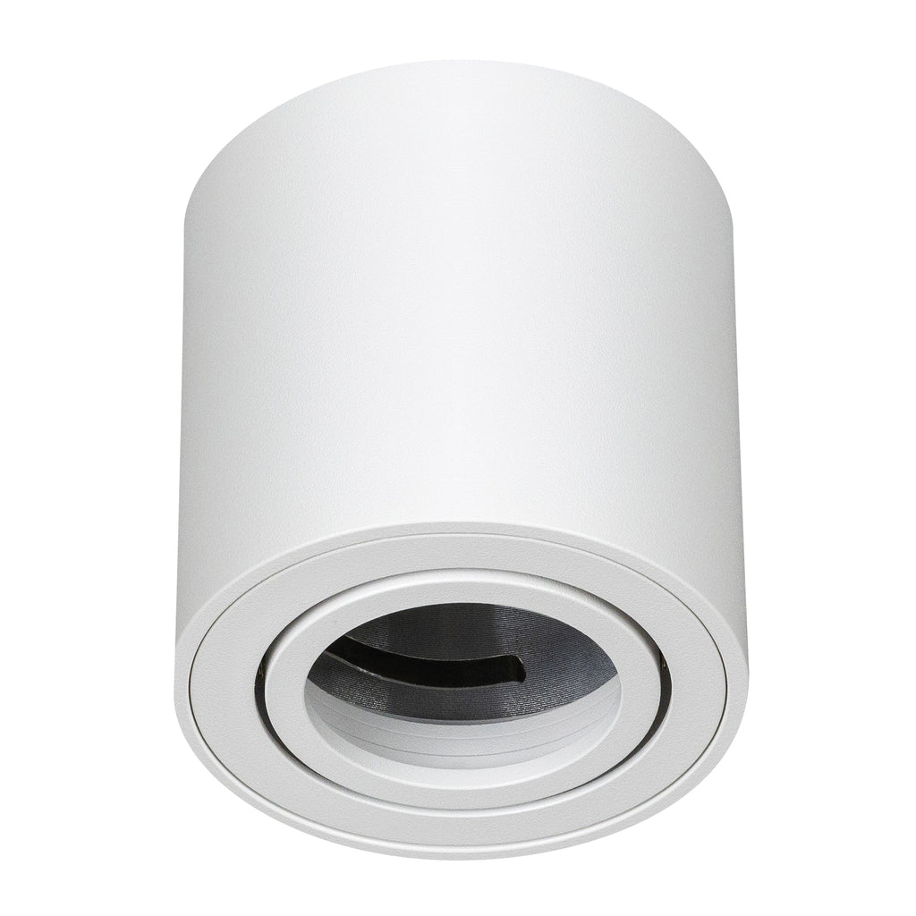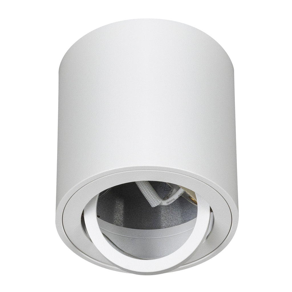Luminario cilíndrico de sobreponer en techo, modelo Era. Fabricado en aluminio y cristal, con un diseño moderno y compacto que se adapta a espacios residenciales, comerciales o decorativos.
