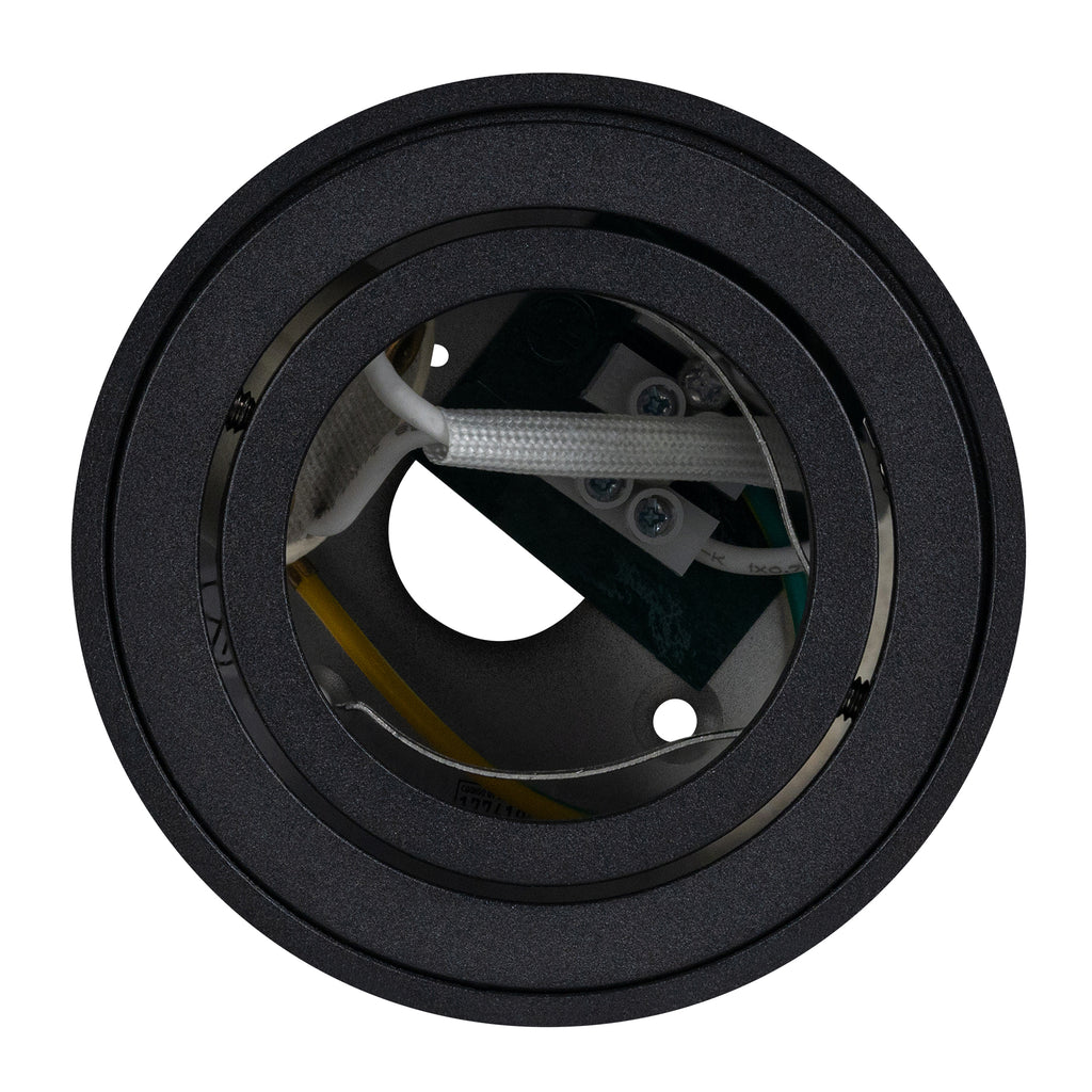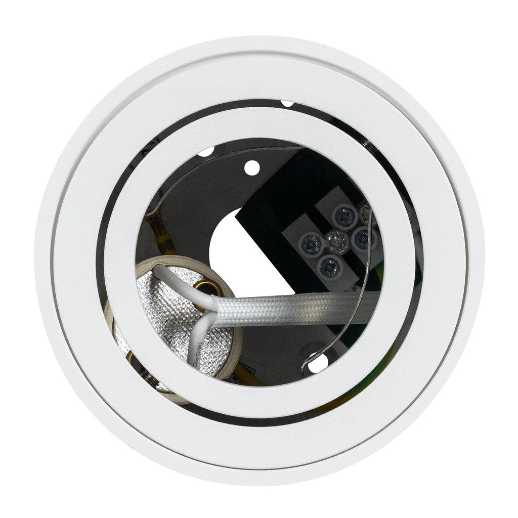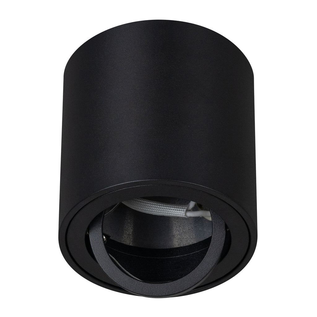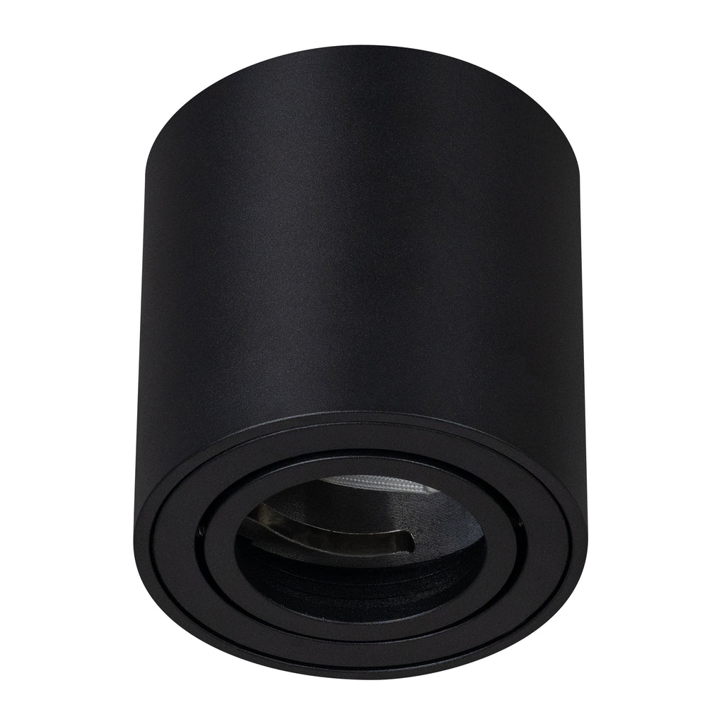 Luminario cilíndrico de sobreponer en techo, modelo Era. Fabricado en aluminio y cristal, con un diseño moderno y compacto que se adapta a espacios residenciales, comerciales o decorativos.