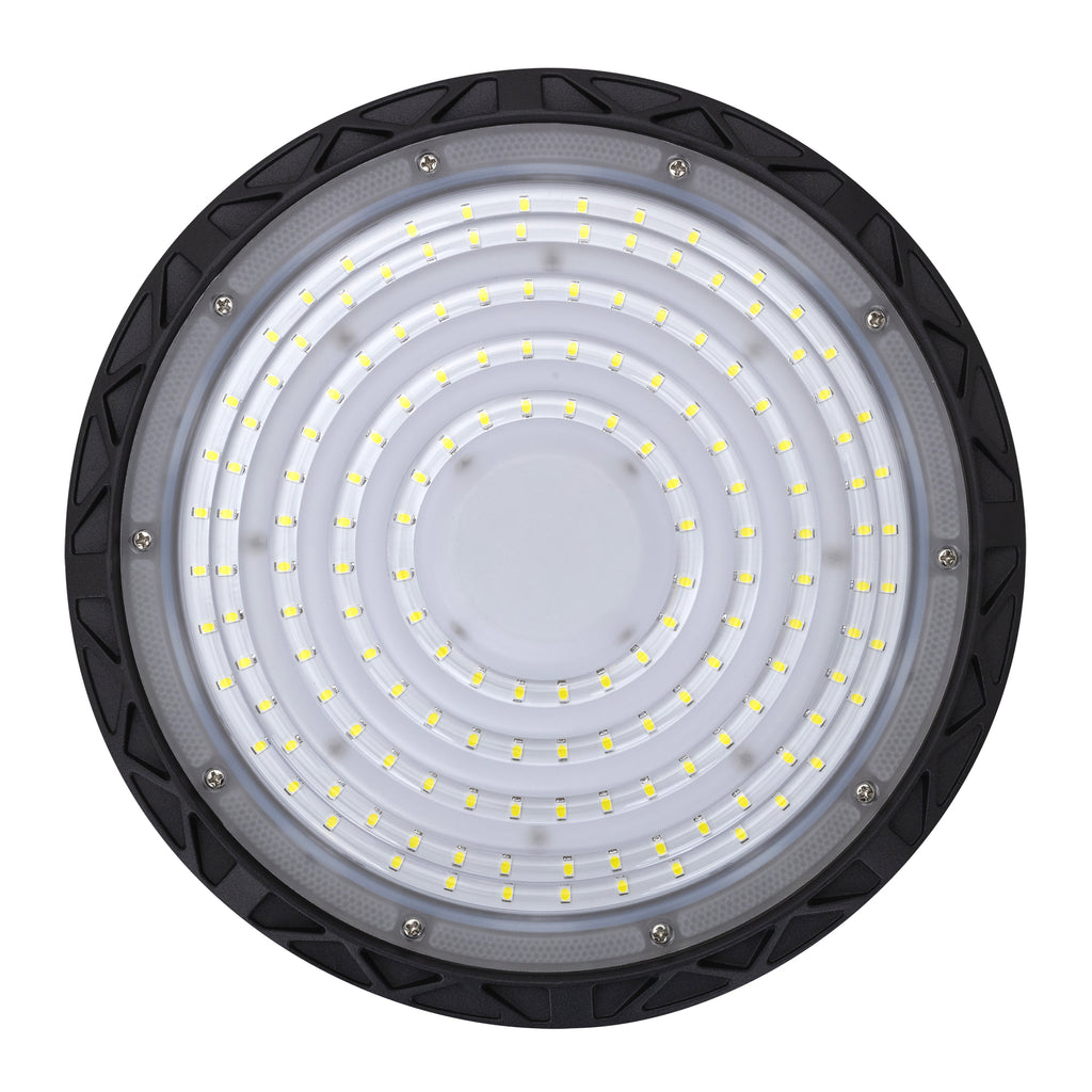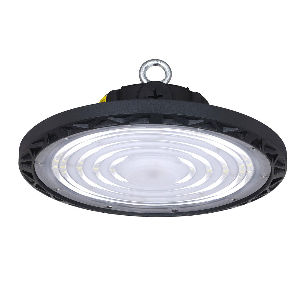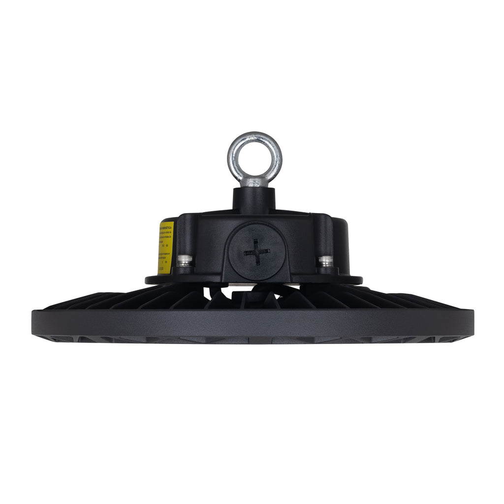 El luminario LED UFO de Estevez está diseñado para suspensión en exteriores, ideal para iluminar canchas, bodegas, naves industriales o áreas de gran altura. Fabricado en aluminio y policarbonato, ofrece resistencia a chorros de agua (IP65) y a impactos (IK08).
