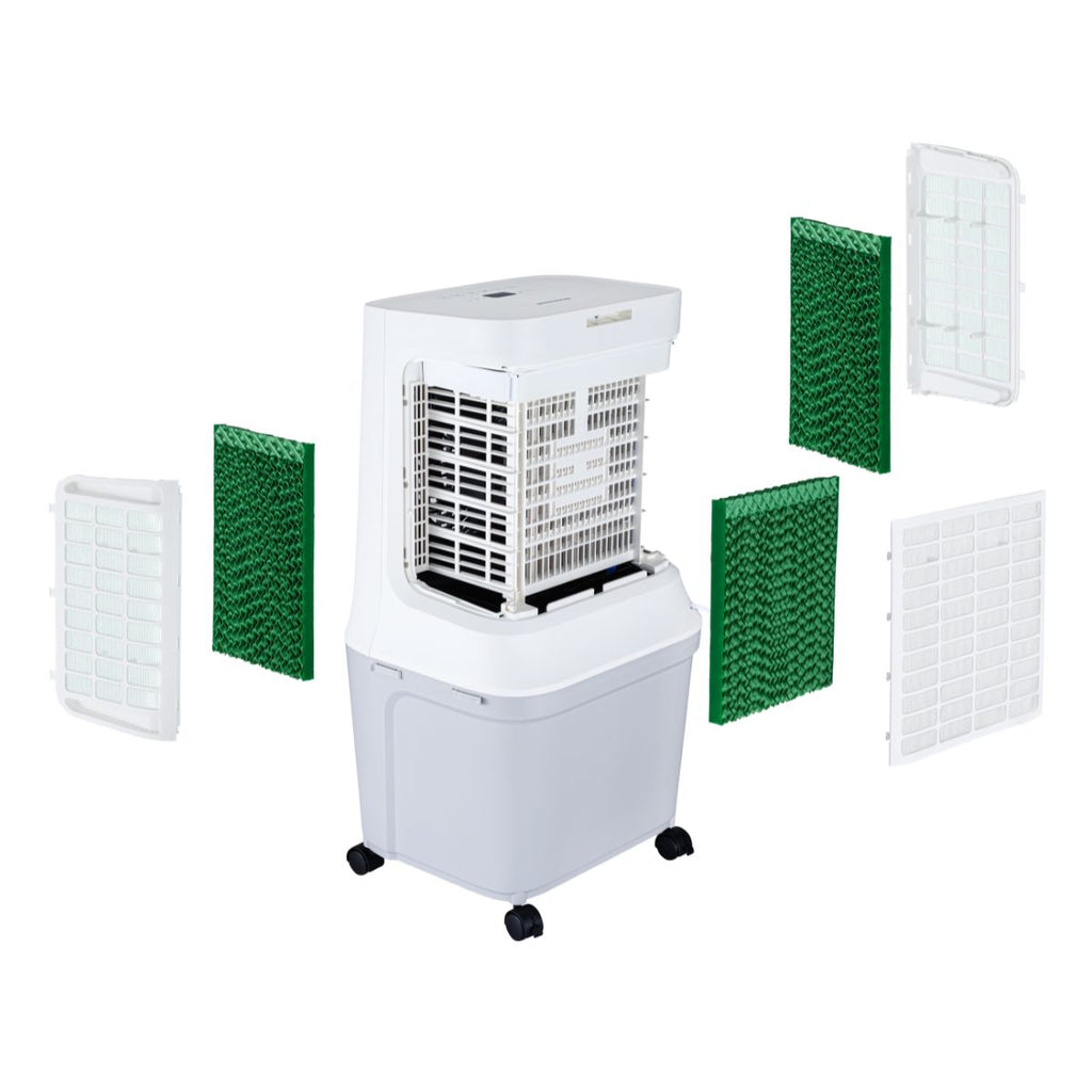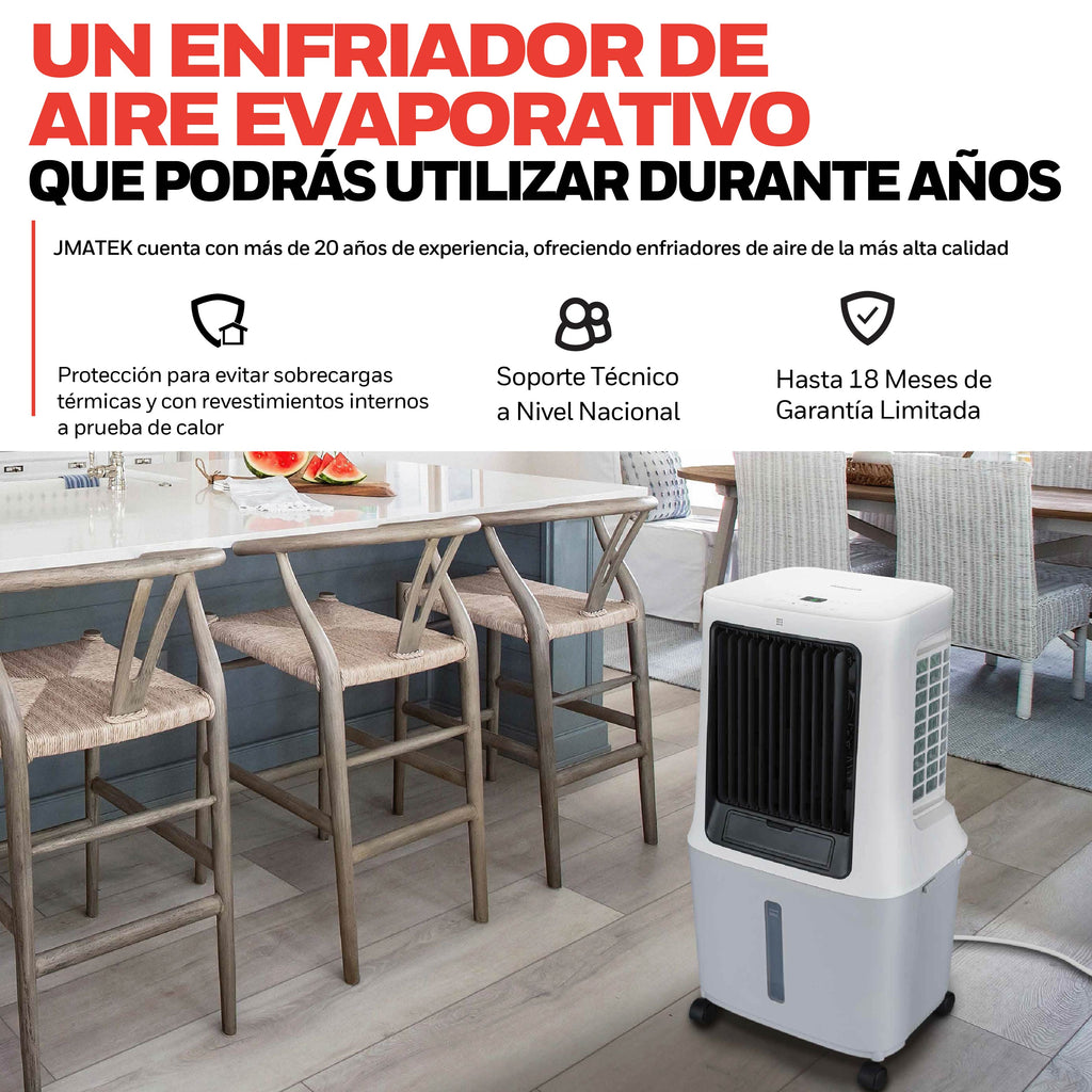 Su diferencial principal está en su combinación de gran tanque de 42 litros, aspas Vortex para mayor proyección de aire y tres paneles Honeycomb con tratamiento antibacterial que maximizan la eficiencia del enfriamiento evaporativo.
