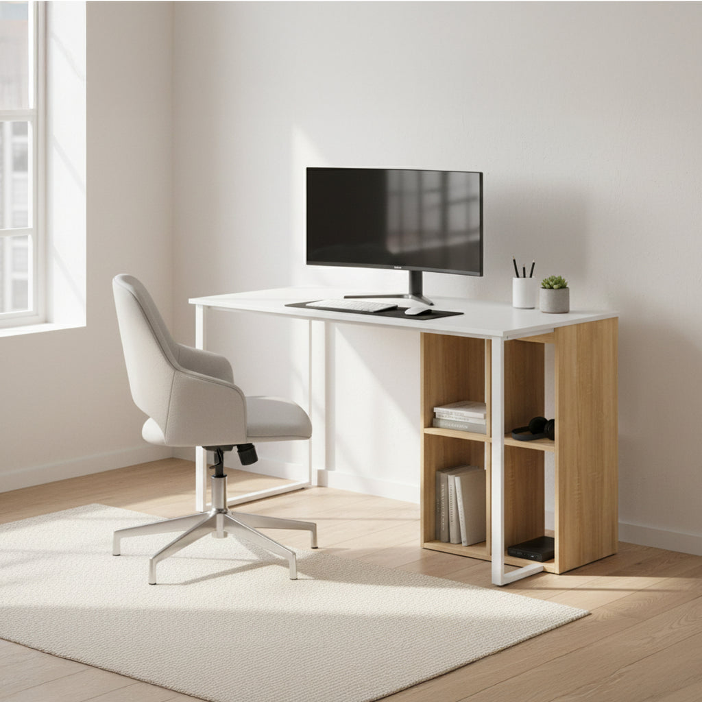 Escritorio compacto y funcional, ideal para espacios pequeños.