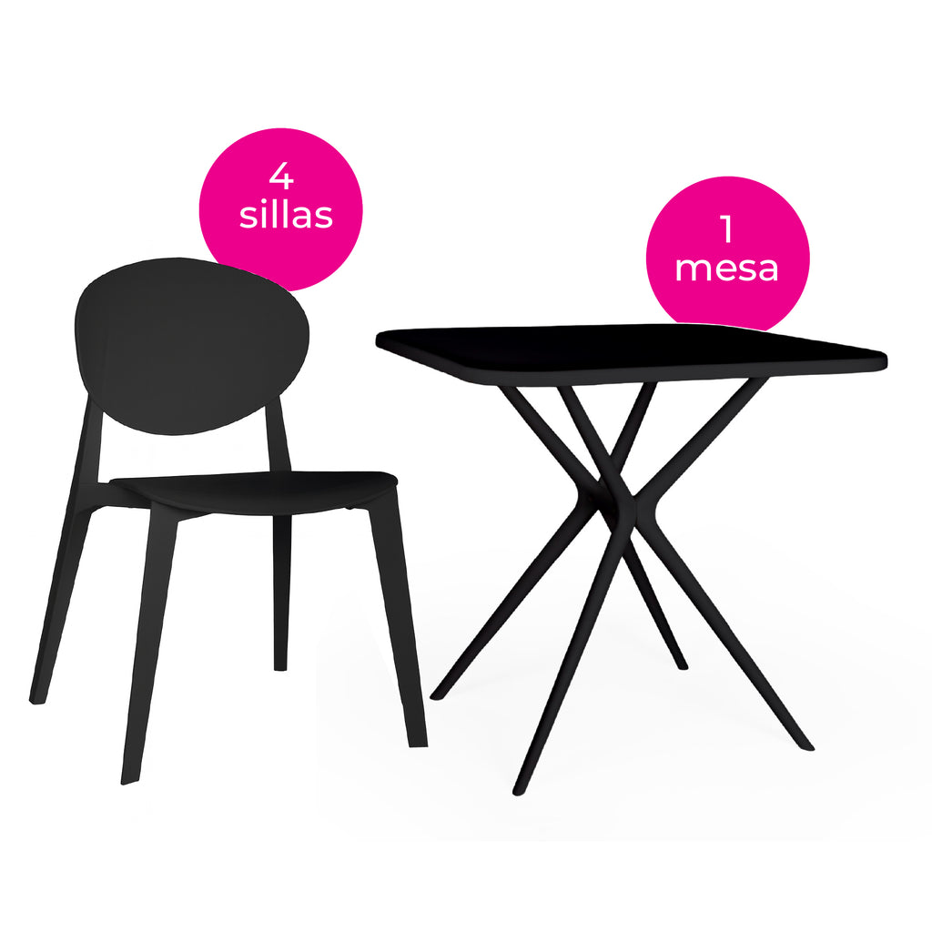 Este comedor combina funcionalidad, resistencia y diseño moderno, ideal para espacios exteriores e interiores. Fabricada en termoplástico polimerizado y polipropileno de alta calidad, ofrece una superficie firme, resistente y de fácil limpieza.