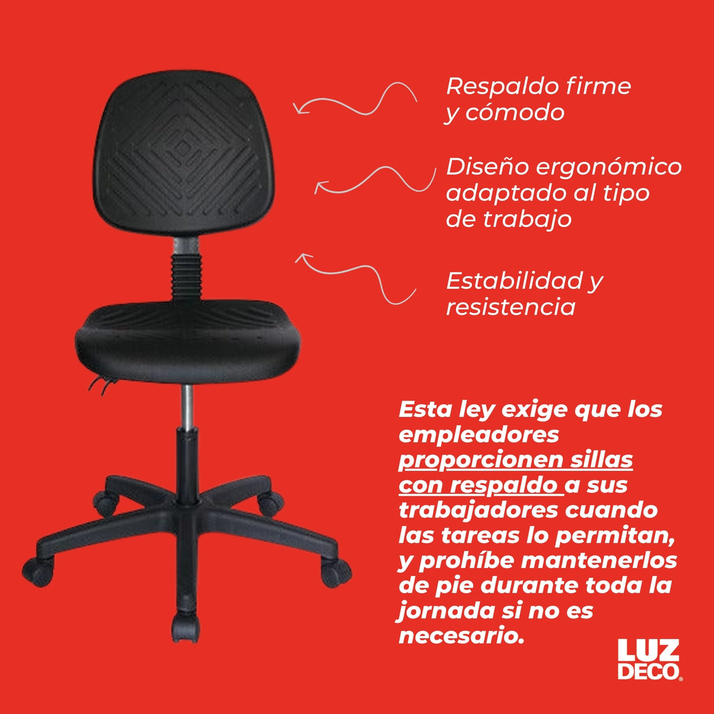 respaldo y asiento: poliuretano compacto suave de uso industrial con interior en madera de aglomerado.