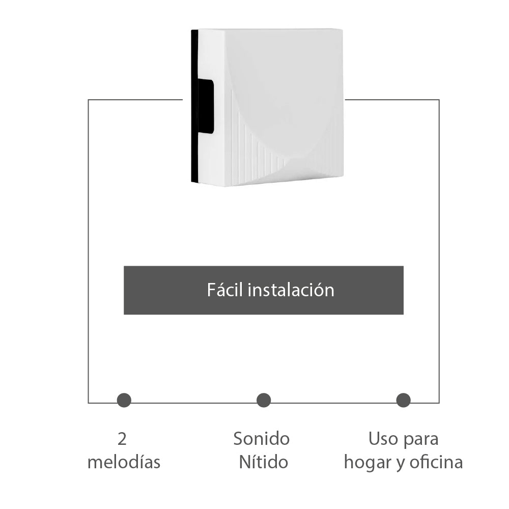 El timbre se puede instalar fácilmente en paredes, puertas o ventanas, con tornillos o adhesivos.