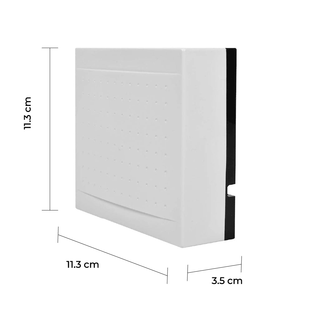 Timbre directo Sonata de 6 watts Estévez, apto para uso interior. Su instalación es mediante cables. Produce un sonido nítido de alta calidad y larga duración con voz Ding-dong, es compatible para uso con un sólo pulsador (no incluido). Elaborado en plástico color blanco con acabado semi mate, sus dimensiones son 11.4 x 11.4 x 4.1 cm. El empaque incluye un paquete con los elementos necesarios para su fijación.